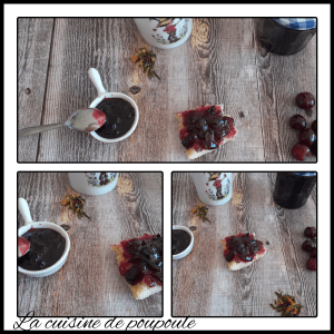 1- Mettre les cerises dans le bol, ainsi que le sucre et le citron et régler 35 min /vit2/100° ne pas mettre le gobelet mais le panier (pour éviter les éclaboussures)
