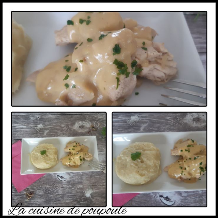 12- Saupoudrer de persil haché et verser la sauce sur le poulet.