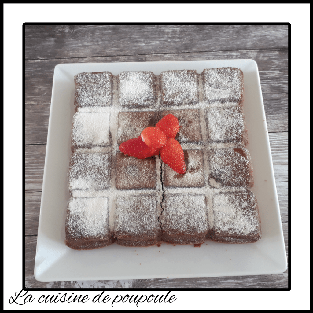 9- Enfourner 25 minutes (dans la recette il préconise 17 minutes de cuisson, c’était insuffisant chez moi, il faudra donc adapter la cuisson en fonction de votre four) 10- Laisser tiédir puis démouler.