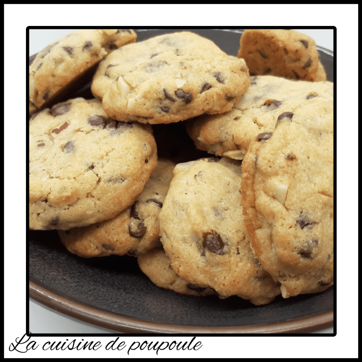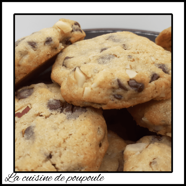 Je vous présente aujourd’hui de bons cookies que j’ai pris chez ma copine Loren du blog Lolo et sa tambouille. Nous avons adoré ces cookies ils n’ont vraiment pas fait longtemps.
