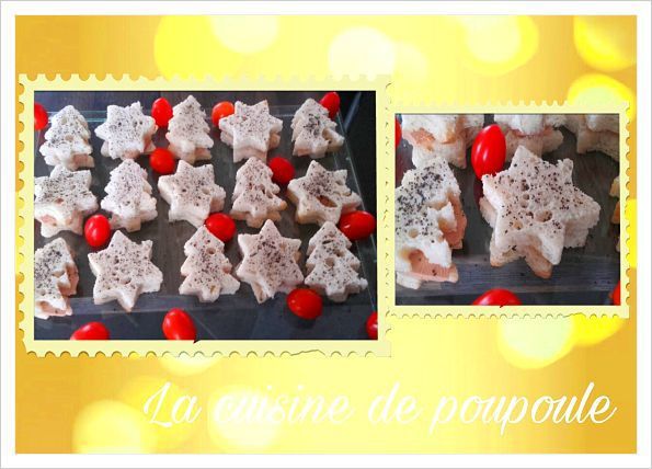Coucou;Voici de jolis toasts qui présente bien. Vous pouvez varier leur forme suivant le thème et leur garniture, selon votre humeur. J’ai utilisé du pain de mie sans gluten, mais vous pouvez utiliser du pain de mie classique. J’ai pris cette idée sur Pinterest. Ingrédients pour 15 toasts : – 30 tranches de pain de mie sans … Lire la suite Toast étoile sapin au foie gras et pavot