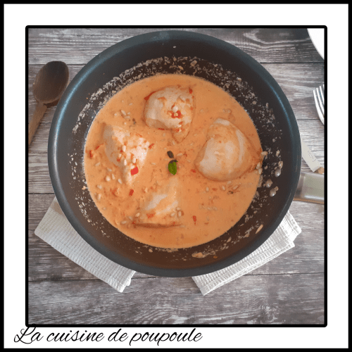 - Quand les filets de poulet sont cuits, retirez-les de la sauteuse, versez la crème dans la sauce, ainsi que le parmesan. Mélangez, salez, poivrez à votre convenance et laissez épaissir un peu la sauce.