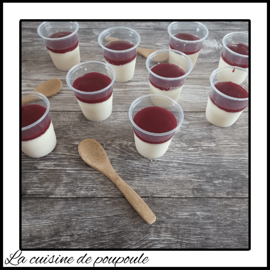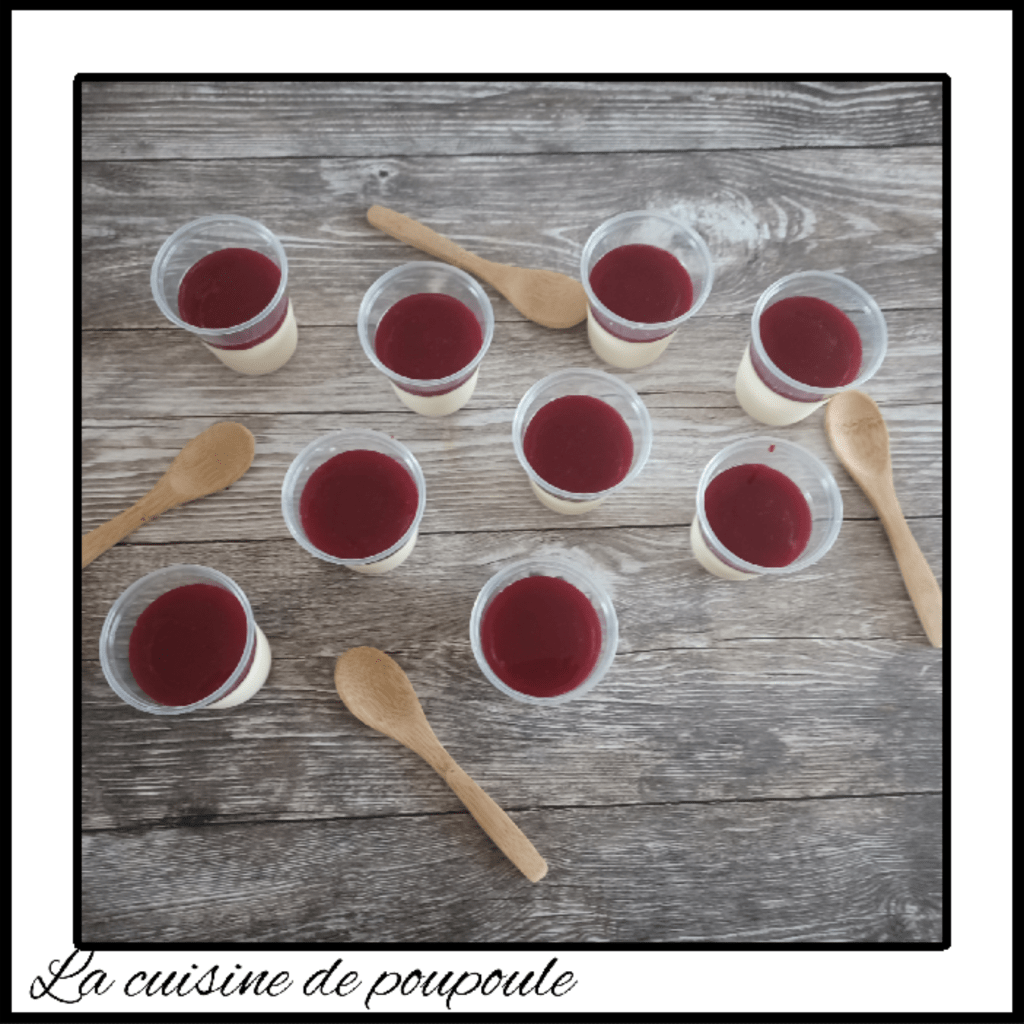 - Quand les panna cotta ont prise verser dessus le coulis de cerise.