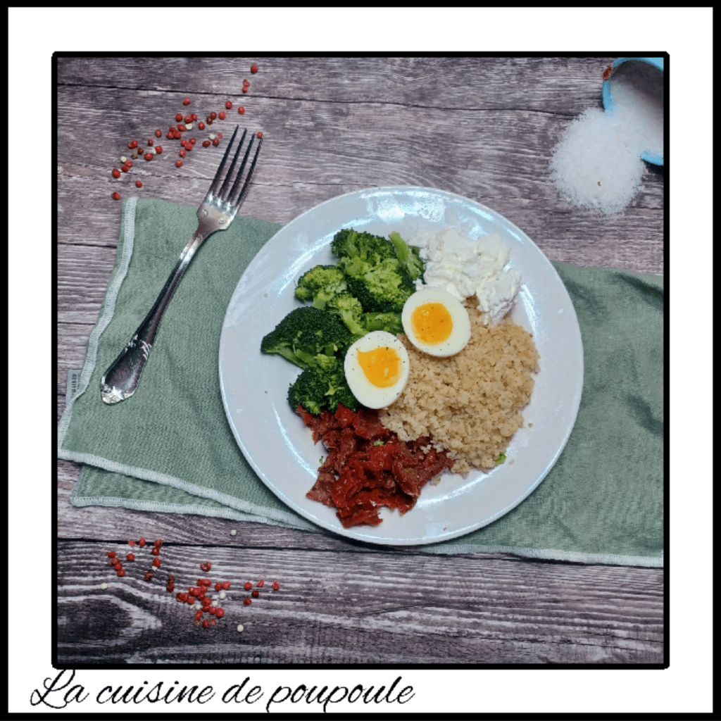 Je vous propose aujourd’hui une salade qui nous a régaler. C’est un repas complet pour le soir ou pour emporter dans sa lunch box le midi au boulot. Nous avons beaucoup aimé. Vous pouvez verrez la garniture selon vos envies ou préférences. Mon Andy qui n’aime pas les tomates séchées je lui ai remplacé par des tomates cerise. J’ai pris la recette sur mon application Joy. Une super application où vous choisissent vos menus pour la semaine et vos produits va directement dans votre panier pour votre drive. Si vous voulez tester voici mon code promo FQLGUR grâce à ce code vous aurez une remise de 2 fois 5€ sur vos courses.
