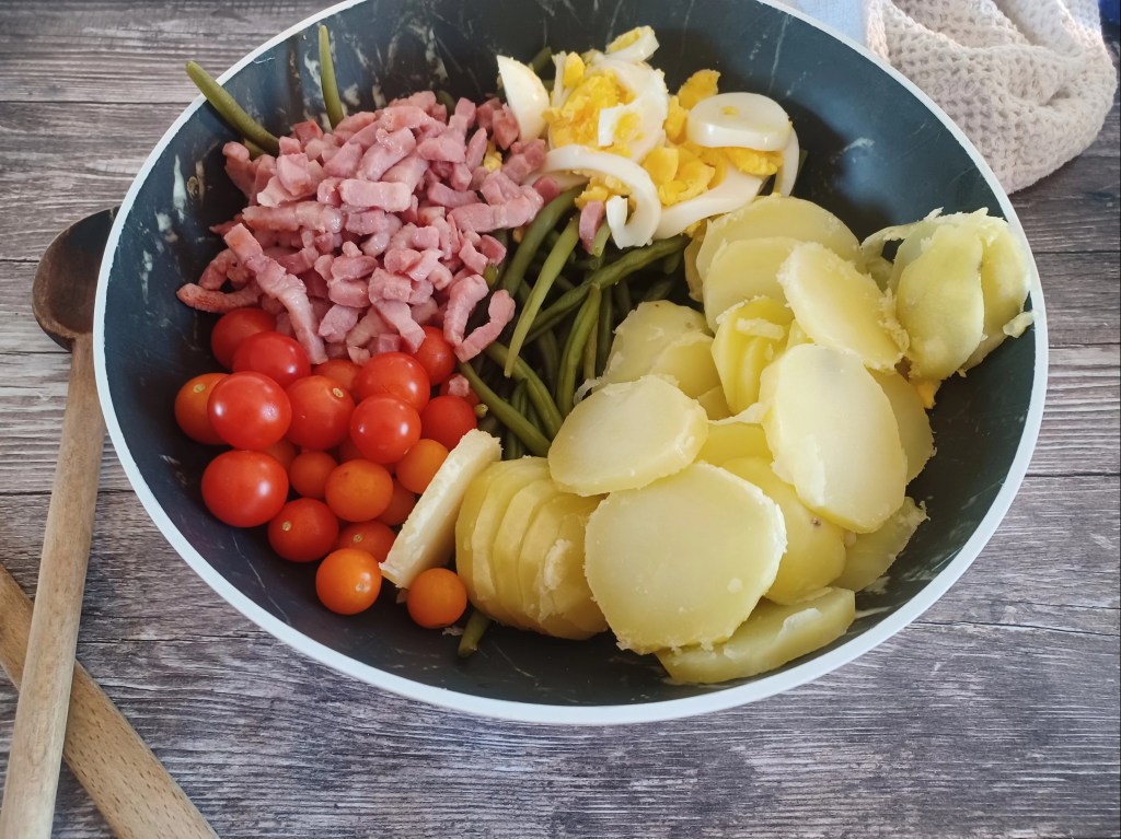 Coucou, aujourd’hui un plat simple et rapide à faire. On profite des derniers légumes de l’été. J’ai utilisé une saucisse de Morteaux que mon papa m’a ramenée. J’ai pris la recette chez ma chère Delphine du blog Oh, la gourmande-. Un régal comme chacune de ses recettes. J’ai utilisé les tomates cerises de mon jardin. Avec cette recette je participe au défi Facebook test de recettes entre blogueurs, le thème est ingrédient ou recettes commencent par la lettre » S