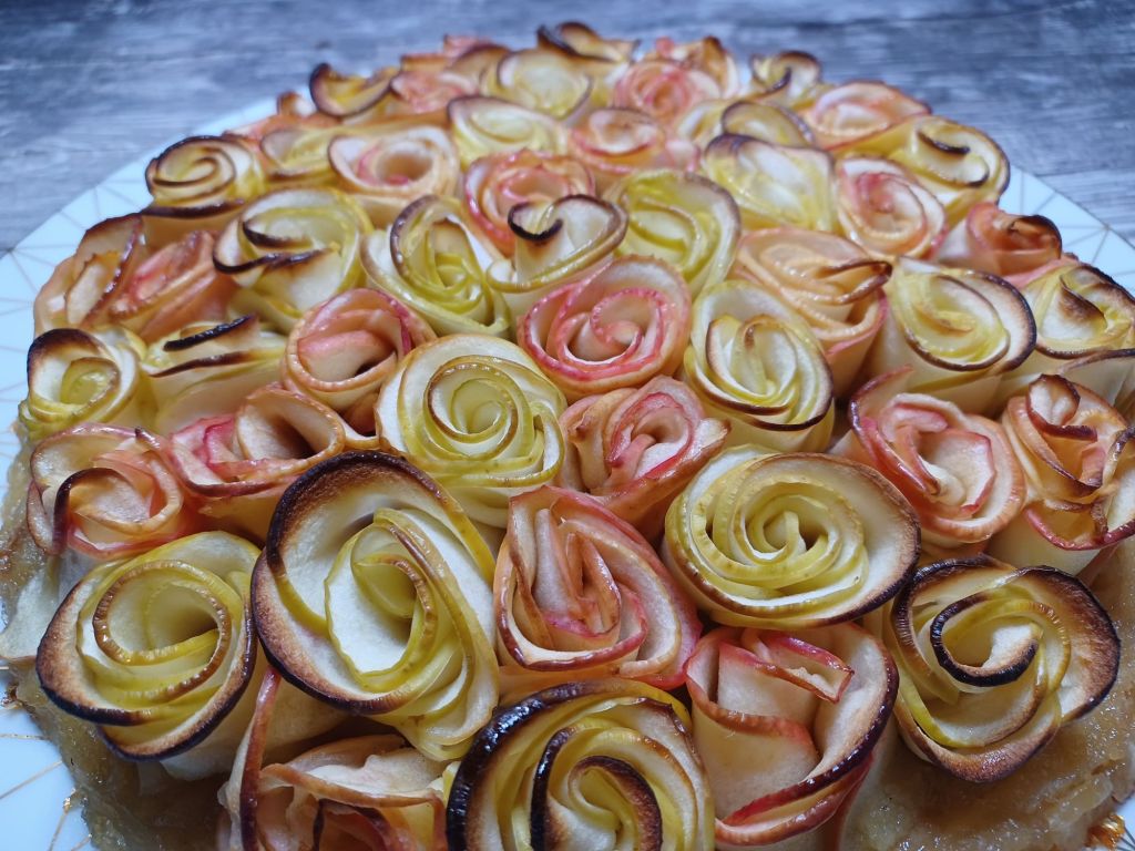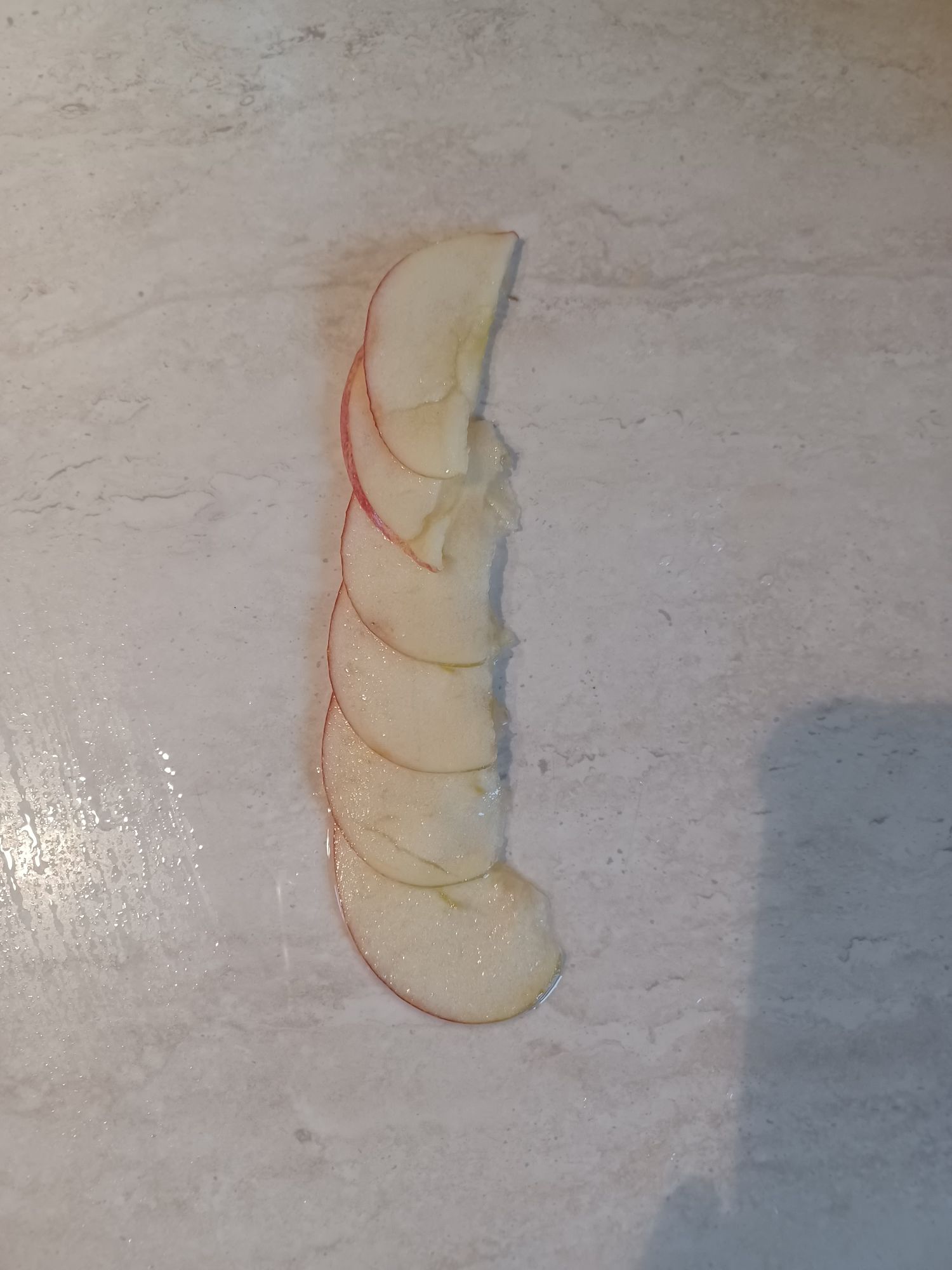 - Roules 6 lamelles par 6 lamelles afin de réaliser les rosaces. Si vos pommes sont mal égouttées, vous aurez du mal à bien les rouler.
