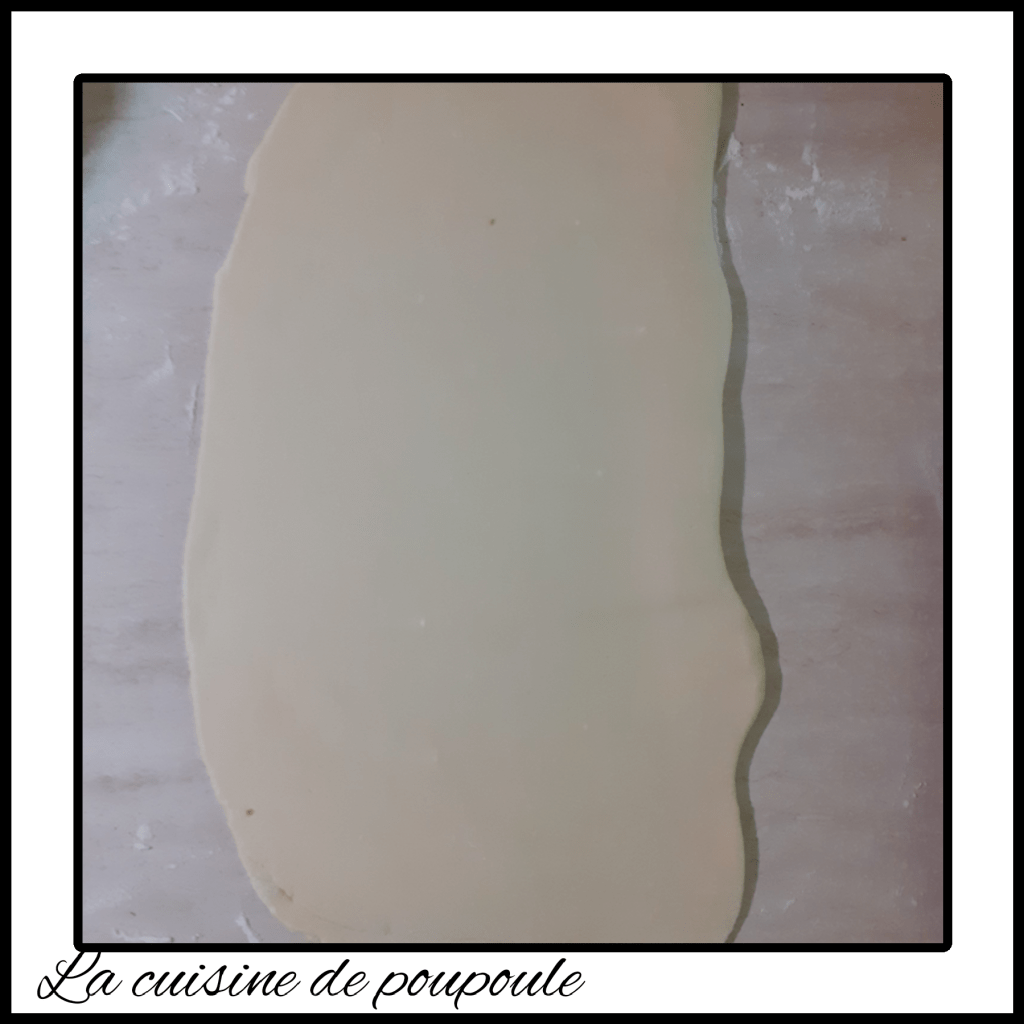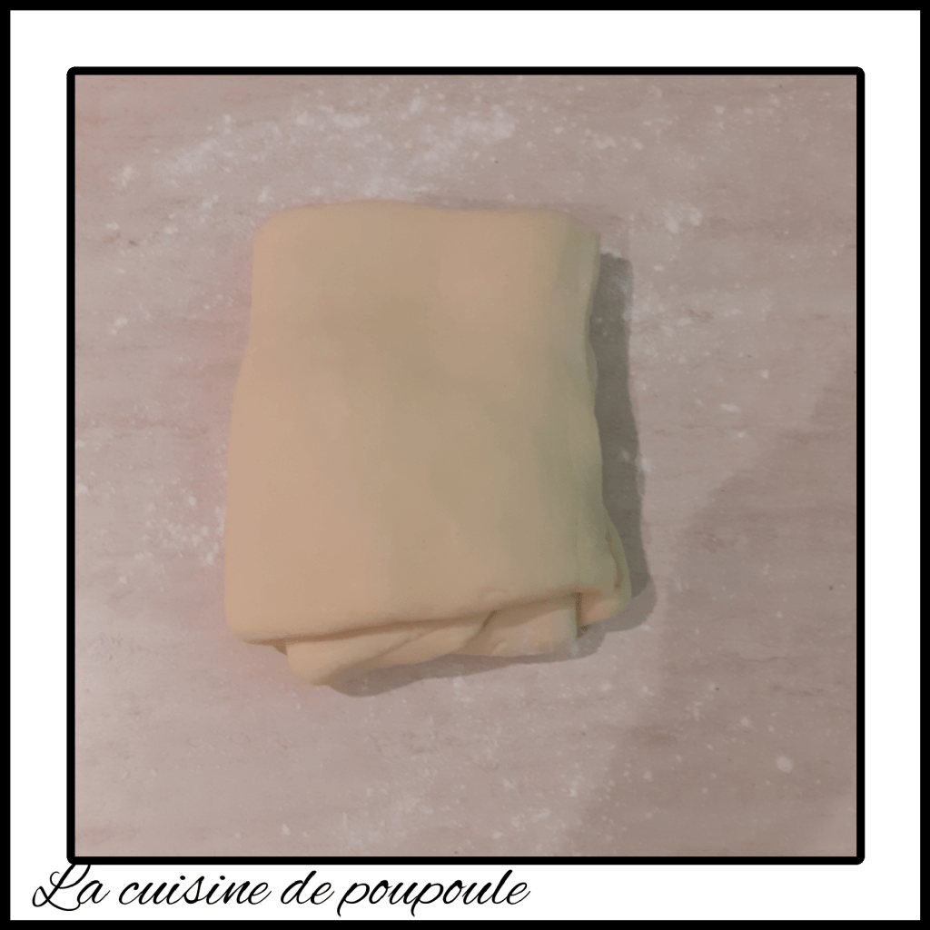 9- Aplatir un morceau avec la paume de la main, façonner une petite boule, placer au réfrigérateur, faire de même avec tous les morceaux (sinon la pâte rend du beurre très vite).