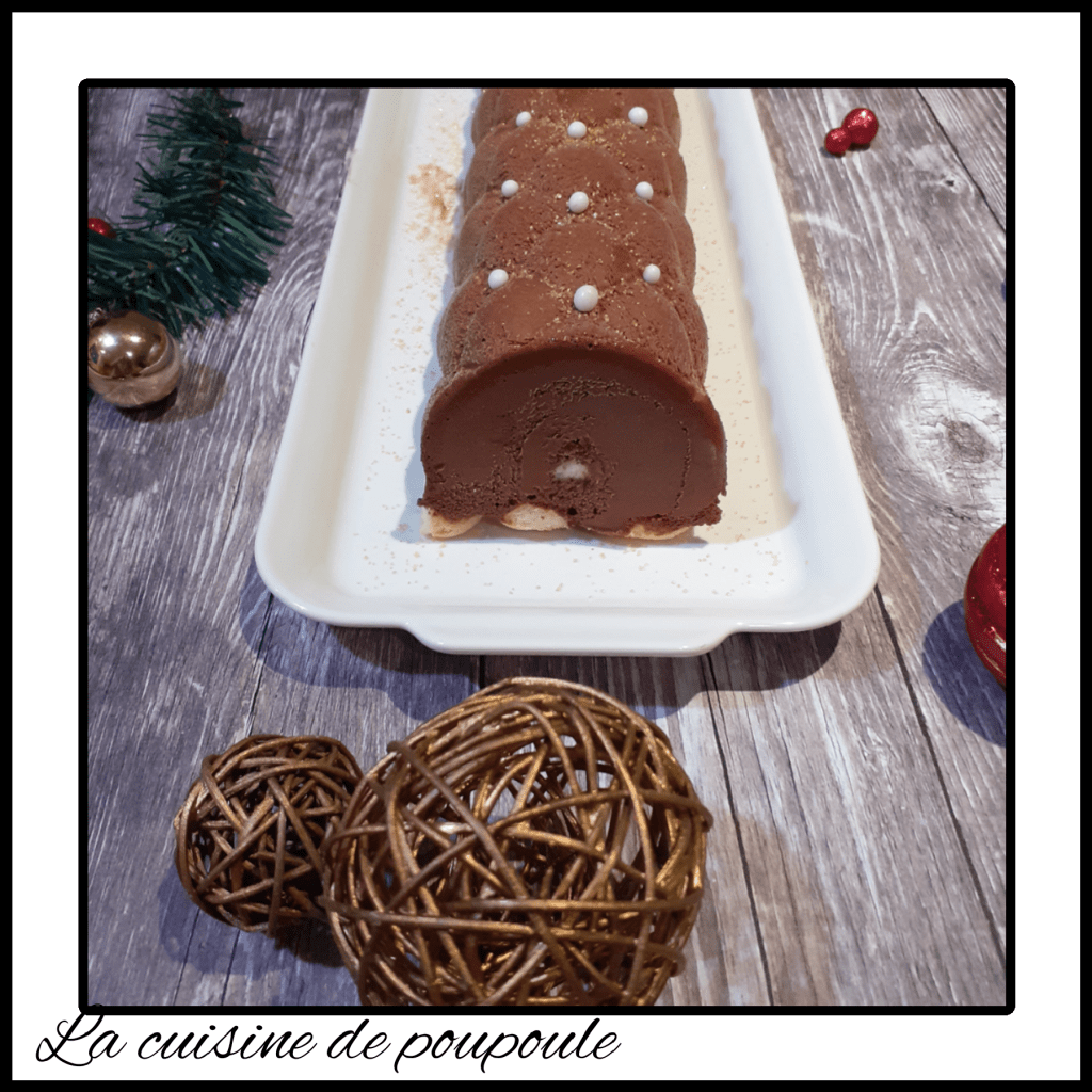Je vous propose aujourd’hui une bûche qui sera sur ma table cette année pour Noël. J’ai pris la recette dans le livre les bûches de chez Guy Demarle. Nous avons adoré cette bûche.