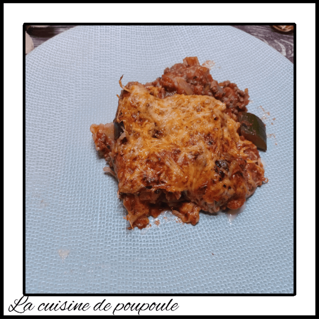 - Verser cette préparation dans le plat à gratin, répartir du comté râpé dessus.