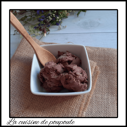 Je vous présente aujourd’hui une bonne glace au chocolat. Pas besoin de robots pour cette recette et en plus votre glace restera tendre. J’ai pris la recette chez ma chère Samar du blog Mes inspirations Culinaire. Cette glace n’a pas fait longtemps avec mes gourmands.