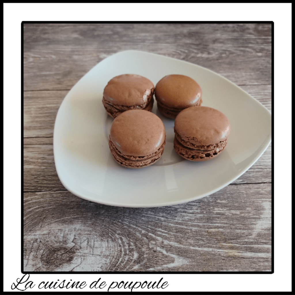 Bonjour; La semaine dernière je vous ai présenté mes macarons au citron, voici donc aujourd’hui la version au chocolat. Mon Andy et mon Léo les ont dévoré.