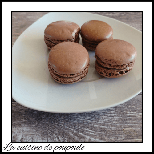 Bonjour; La semaine dernière je vous ai présenté mes macarons au citron, voici donc aujourd’hui la version au chocolat. Mon Andy et mon Léo les ont dévoré.