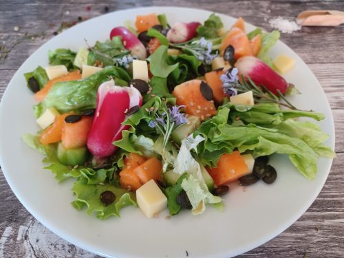 - Préparer la sauce, mélanger le yaourt grec, ½ cas d’huile d’olive, le parmesan râpé et le jus de citron.