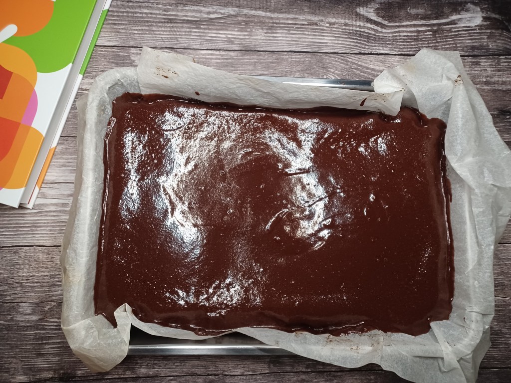 - Versez dans un moule carré et enfournez à 180° 20/25 min à surveiller. Pour vérifier planter la pointe d’un pic à brochette s’il reste quelques petits morceaux accrochés (pas liquide) c’est que c’est bon.