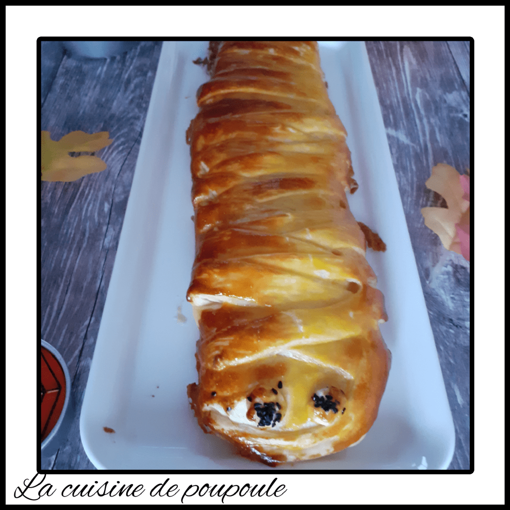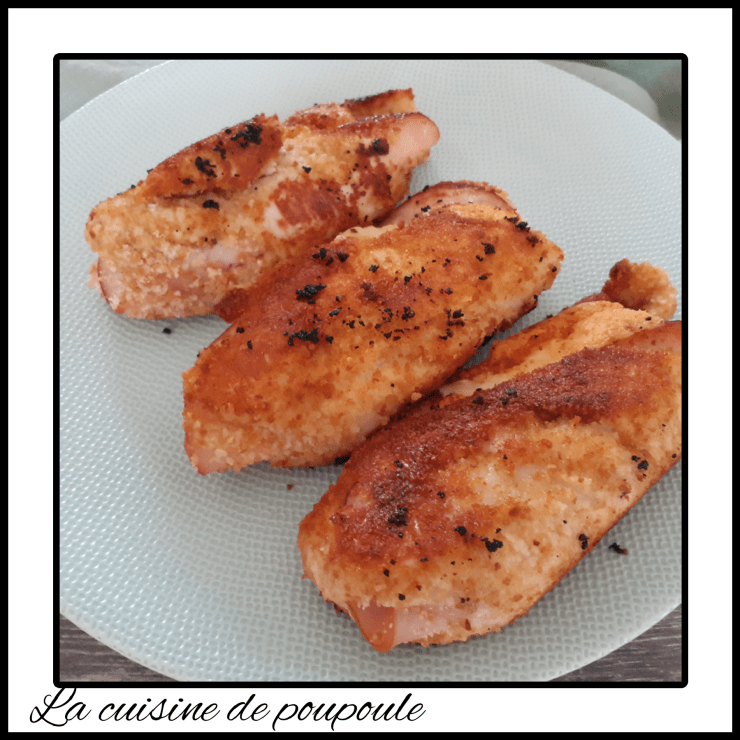 4. Au centre, disposer en ligne 3 bonnes cuillères à café de farce. Déposer dessus une lamelle de fromage (ou les 3/4 d’une toastinettes).