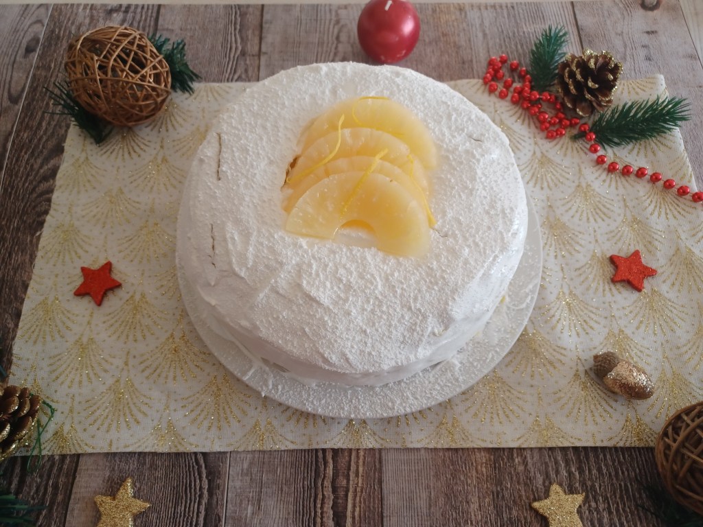 3. Je ne sais pas si quelqu’un a déjà testé cette recette, mais dans le livre, il est indiqué 150g d’ananas frais pour la brunoise + 100g de chair d’ananas pour la garniture, or cette « garniture » n’est jamais mentionnée dans le déroulé de la recette … Ça me parait trop 250g d’ananas, il n’y a pas la place dans le gâteau, du coup j’ai mis que les 150g de brunoise.