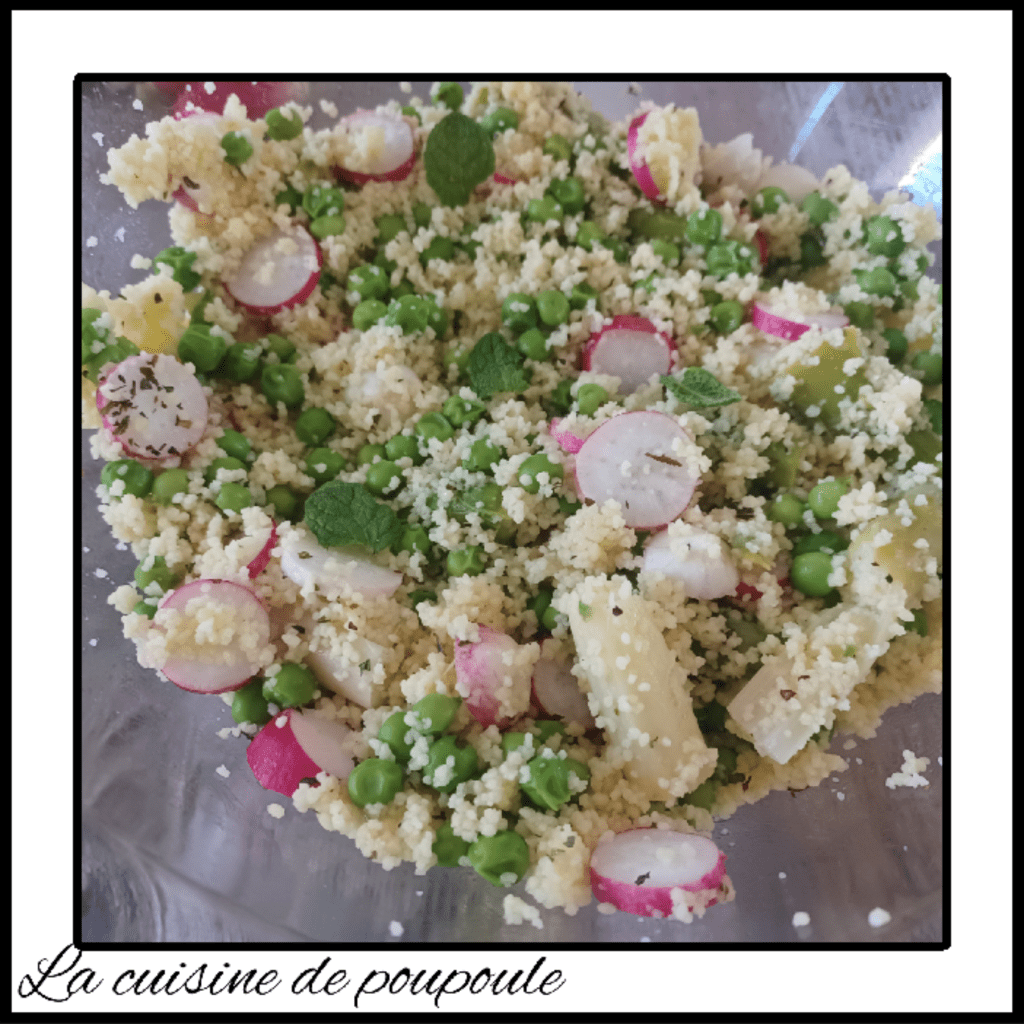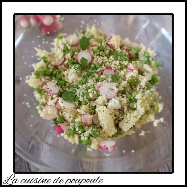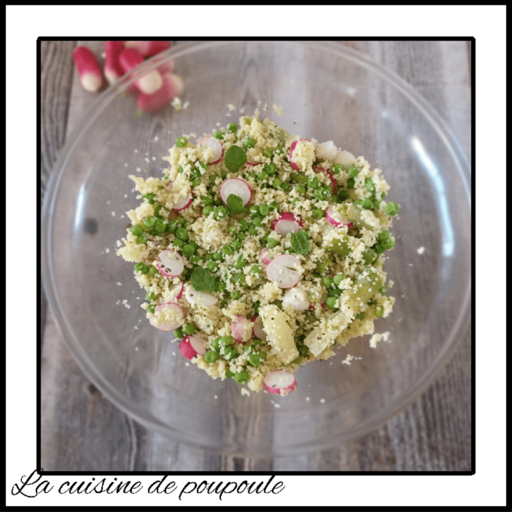 Semoule en salade aux asperges, radis, petits pois et menthe