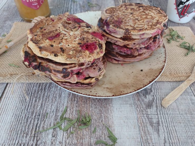 - Préparez la compotée (facultatif) : Dans une petite casserole, faites chauffer rapidement les 50 g de myrtilles et la cuillère de miel jusqu’à obtenir une texture de compote épaisse. Laissez tiédir.