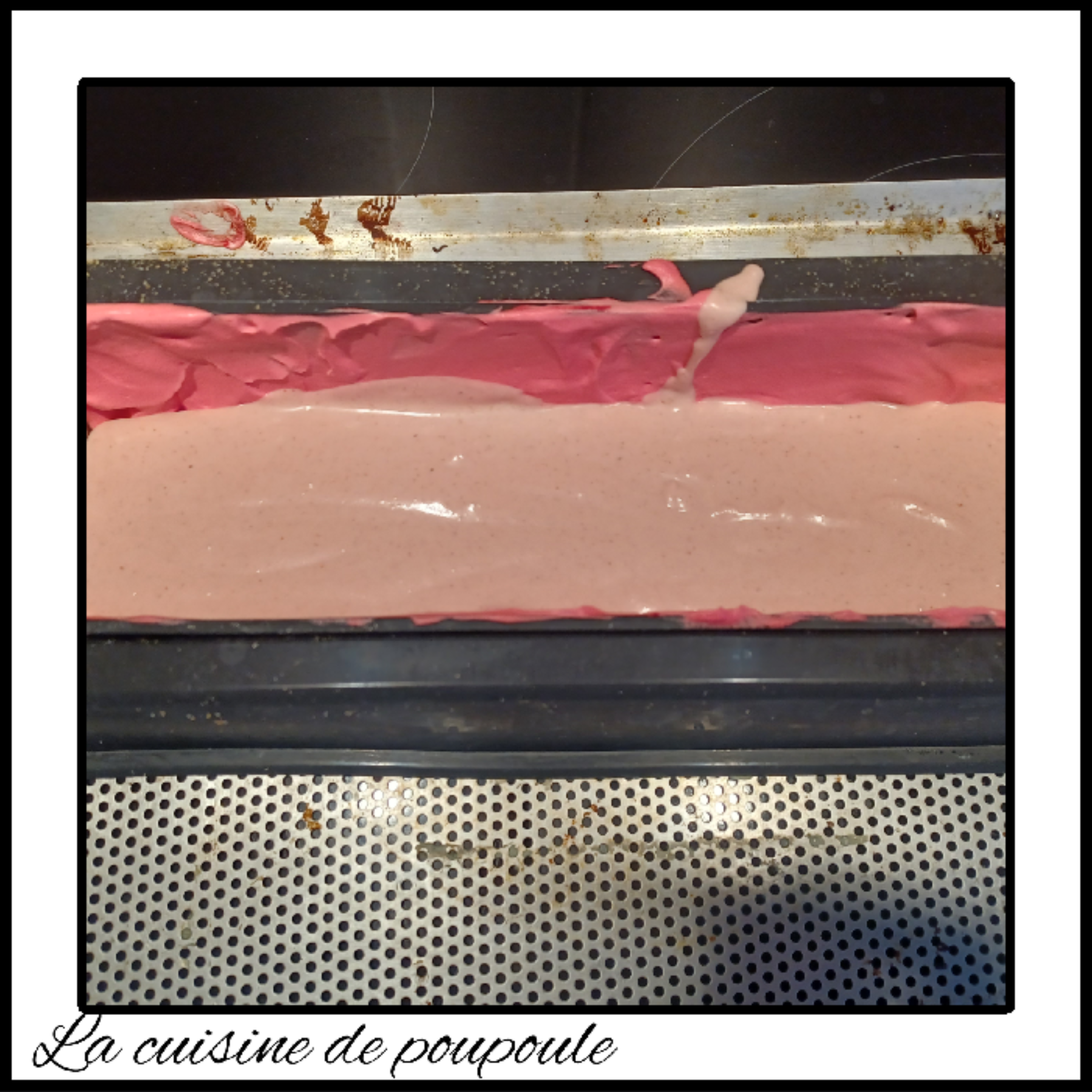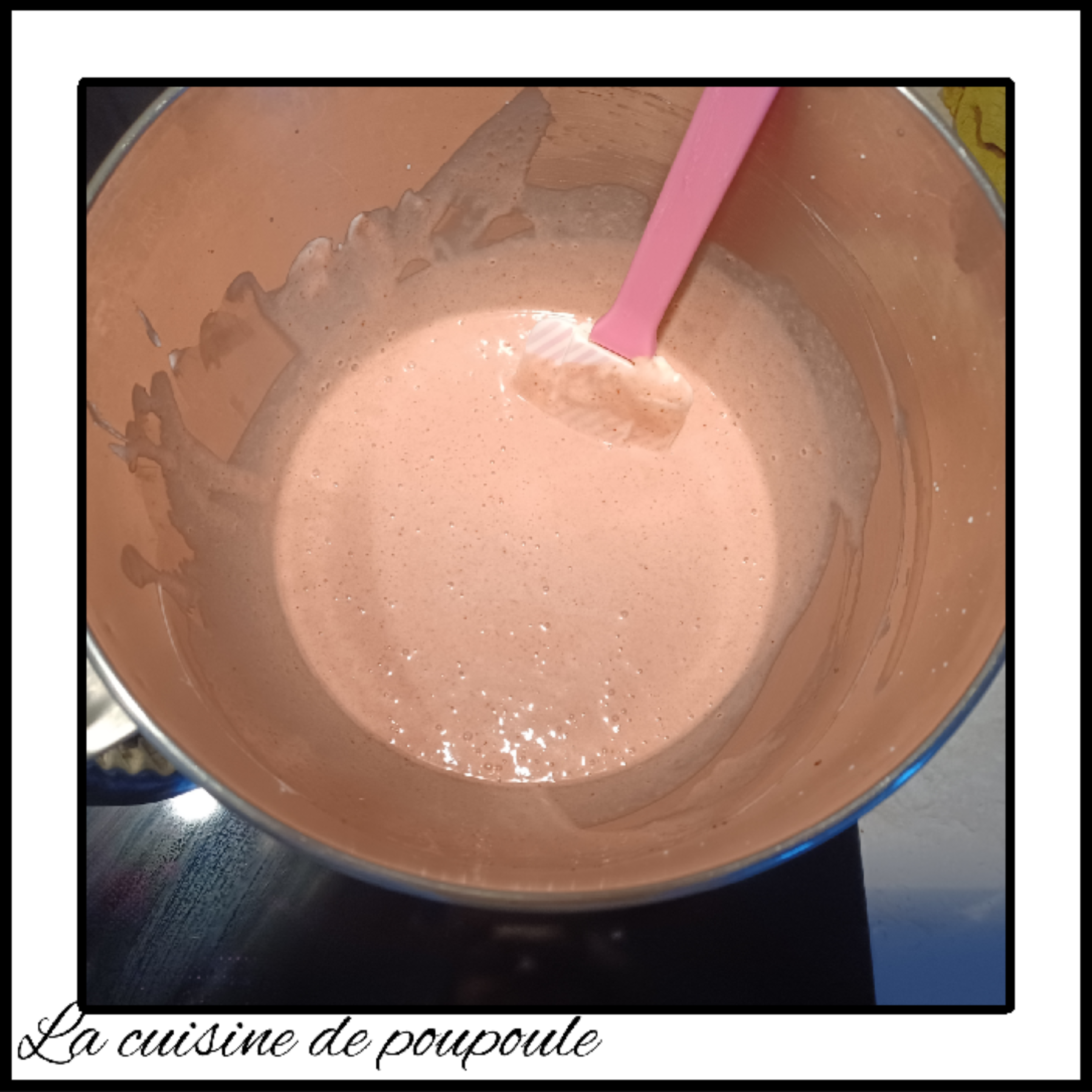 - Remettre sur le feu 3 minutes en mélangeant sans arrêt. Verser cette préparation au fond du moule et égaliser sa surface.