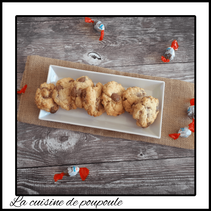 Dès que j’ai vue cette recette chez Amélie du blog Cuisine de famille, je me suis dit il faut absolument que je les fasse. Le seul problème c’est que dès que j’ai des schoco-bons à la maison il disparaisse, alors là je les ai achetés et directs au fourneau. Résultat des cookies trop gourmand.
