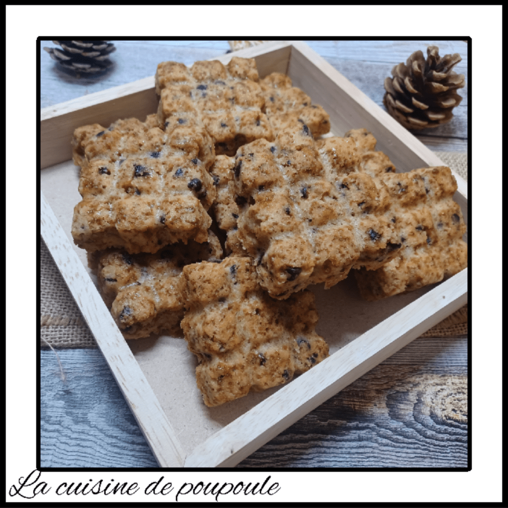 Bonjour; Comme je vous l’annonçais il y a quelques jours je suis la marraine du jeu compilé mois un menu et j’ai choisi comme thème les cookies dans tous ces états. Les organisatrices : Nath – Une cuisine pour Voozenoo & Viviane – Quoi qu’on mange ? sans oublier notre marraine Christelle – La cuisine de Poupoule. Voici donc ma 1re participation avec ces cookies tablettes. J’ai pris la recette chez ma chère Delphine. Un régal ces cookies. J’ai utilisé mon moule mini tablette de chez Demarle.