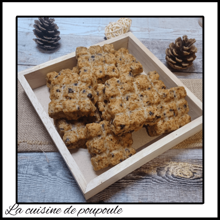 Bonjour; Comme je vous l’annonçais il y a quelques jours je suis la marraine du jeu compilé mois un menu et j’ai choisi comme thème les cookies dans tous ces états. Les organisatrices : Nath – Une cuisine pour Voozenoo & Viviane – Quoi qu’on mange ? sans oublier notre marraine Christelle – La cuisine de Poupoule. Voici donc ma 1re participation avec ces cookies tablettes. J’ai pris la recette chez ma chère Delphine. Un régal ces cookies. J’ai utilisé mon moule mini tablette de chez Demarle.