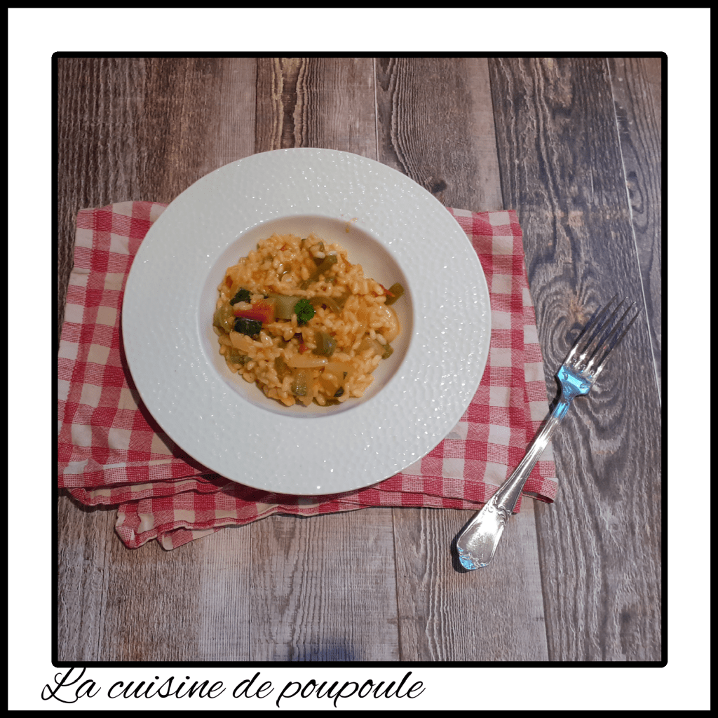 - Ajouter les légumes, les épices, le riz, le concentré de tomate et le cube de bouillon de volaille que vous aurez émietté.