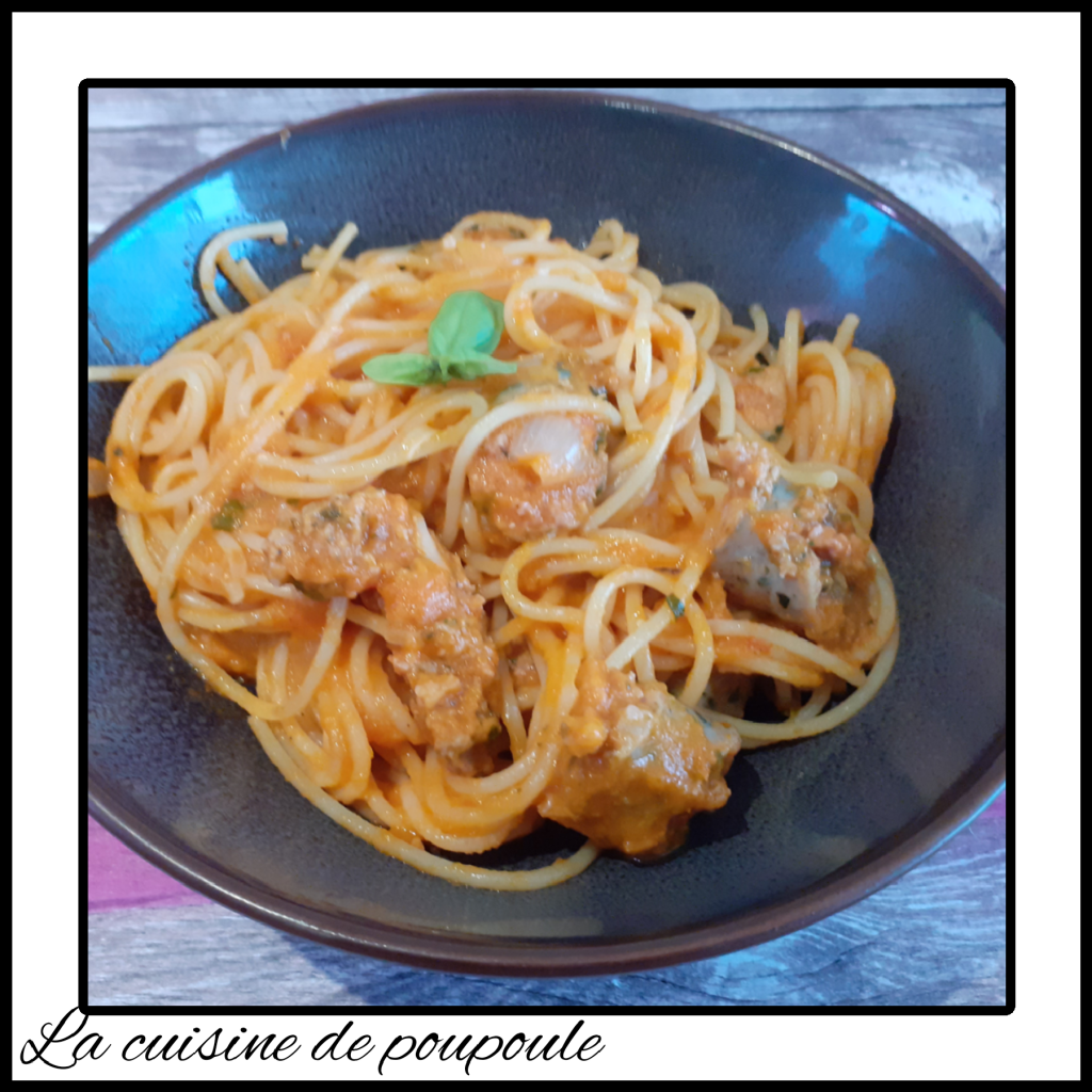 Aujourd’hui de bonnes boulettes maison que j’ai servie avec des spaghettis. J’ai pris la recette chez Karen du blog les Papilles de Karen.