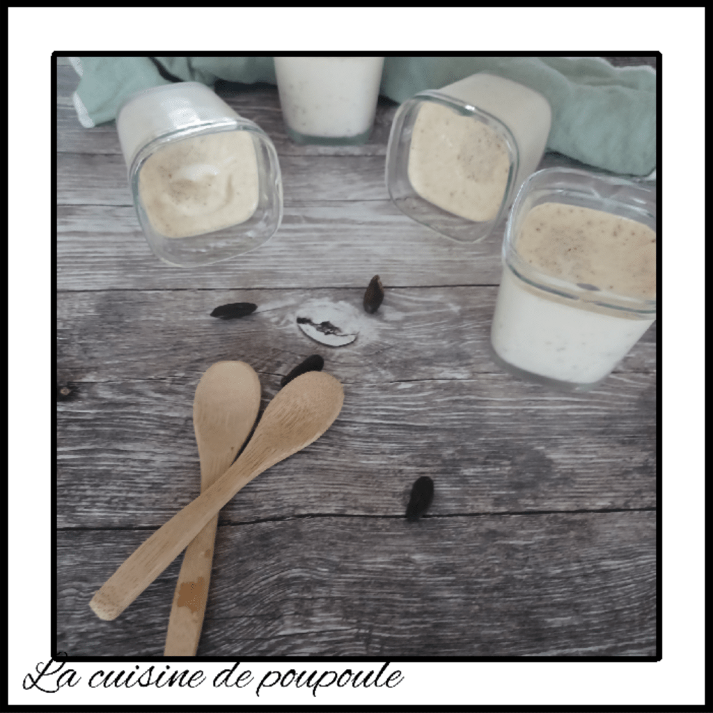 - Dans une casserole, chauffer la purée de poire, le jus de citron, les grains de vanille.