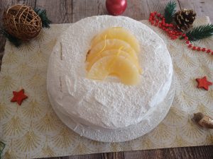- Incorporer les dés de poires puis verser le tout dans un cul de poule. Pour que l’insert se démoule facilement recouvrir votre cul de poule de feuille rhodoïd, puis placer 3 heures minimum au congélateur.